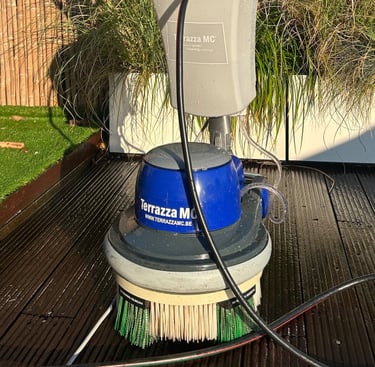 Verwijder groene aanslag en vuil van jouw terras met onze professionele service.